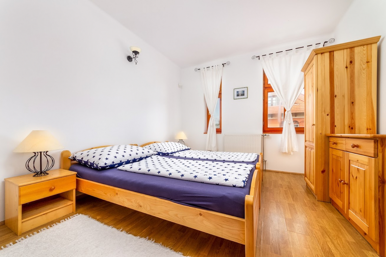 Emelet: Zuhanyzó/WC, három kétágyas szoba, balkon.