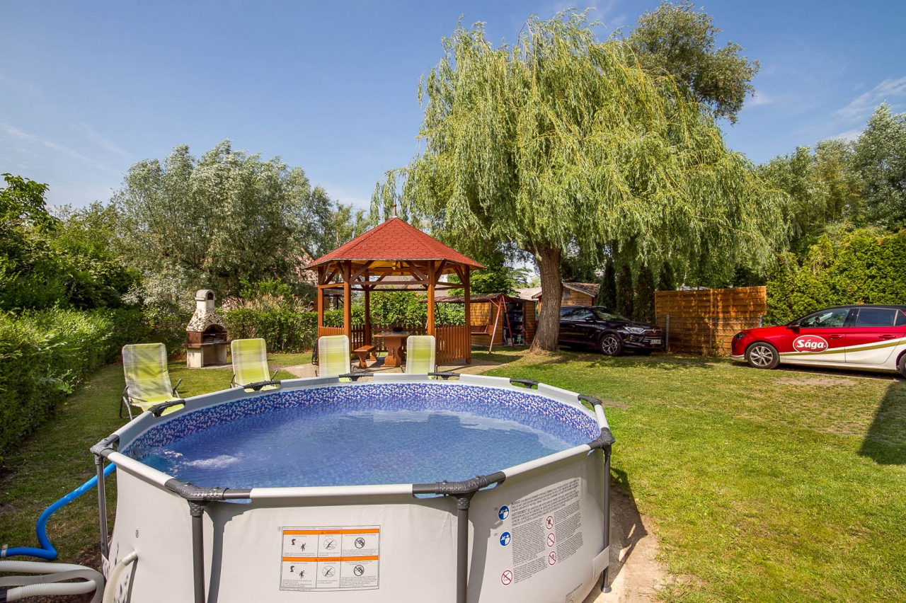Információk: Klimatizált nyaralólakás az emeleten 4+1 főre strandközeli helyen medencével, wifivel. Kert, kerti bútor, kerti grill, autóbeálló, SAT-TV, hintaágy, plasztik medence, klíma ( felárért ). A földszinti lakás is bérelhető ( BM 54-es kódszámon ).